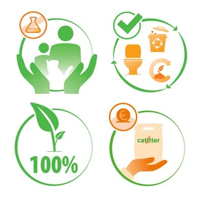 Natural and highly efficient cat litter made from plant fibres, forms clumps quickly, neutralises unpleasant odours, compostable or can be flushed down the toilet, non-toxic and gentle on the paws.
