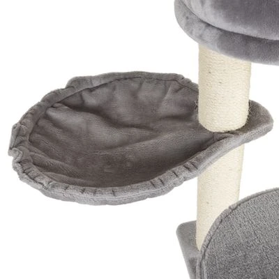 The large, round hammock and the den are both ideal for hours of dreaming and dozing. There is also an oval snuggle bed with a border on the uppermost level, which is sized to suit larger cats as well as multiple cats at once. The snuggle bed has an elasticated cover that can be removed from the base for machine washing.