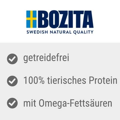 Bozita kitten food contains salmon as a source of valuable omega-3 fatty acids. The cat food also provides your little velvet paw with vitamins, taurine and prebiotics, which can support digestion. Bozita Bites in Sauce Kitten does not contain any cereals.