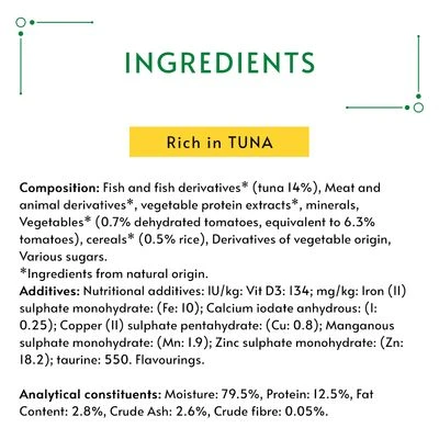 Luxurious wet food for adult cats, made with selected natural ingredients and rich in poultry, meat or fish, enriched with vegetables and gently produced for optimum flavour and nutrition.