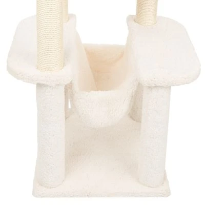 Super-soft cat tree with a hammock, den and snuggle bed, all covered in warm faux sheepskin plush. Beds and cushions are removable and washable. Dimensions: 142 x 61 x 44cm (H x L x W)