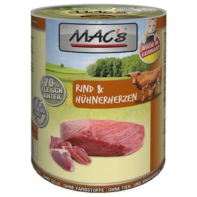 This food contains a high proportion of meat while being free from reconstituted meat so it mimics a cat’s natural diet and ensures that cats will love to eat it all up. The recipe is free from grain and soya, making this food highly digestible and suitable for cats with allergies or intolerances to these ingredients. MAC’s Cat is a complete cat food that contains all vital nutrients and can be fed to your cat on a daily basis.Â