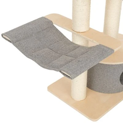 Offer your cat a wide variety of choices for relaxing, watching and feeling fantastic with this Modern Living Amora Scratching Tree. It is a great choice for larger breeds, as it is particularly stable. The natural plywood platforms and attractive upholstery covers make this an eye-catching addition to any home.