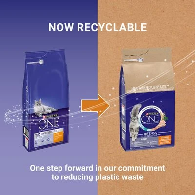 Purina ONE Adult Chicken & Whole Grains with the unique Bifensis Dual Defense formula supports your cat’s natural defences. The innovative recipe is packed with healthy chicken and also contains key nutrients to help keep your cat healthy and happy. It contains the Purina ONE Bifensis formula was developed by Purina’s veterinary and nutritional experts to help support your cat’s health inside and out. This tasty kibble encourages a healthy digestive system and is scientifically proven to stimulate the intestinal immune system into secreting antibodies.