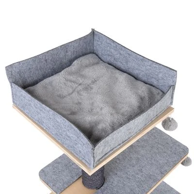 The integrated den in the Raleigh Scratching Tree provides your cat with the perfect place to relax. Animating balls on elastic bands encourage your cat to play and bring fun to the household. Thanks to the contrasting colours, with dark sisal posts and light wood, the Raleigh Scratching Tree makes an eye-catching addition to any home.
