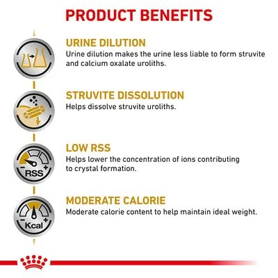 - Struvite dissolution: Urinary S/O Moderate Calorie helps to dissolve struvite stones