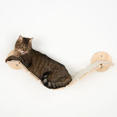The Sia Suspension Bridge is made of natural, solid pine wood and consists of individual planks attached to durable and flexible webbing. The depth of the bridge can be controlled by placing the wall brackets closer together or further apart. This bridge can be combined with other wall-mounted components for a perfect spot for your cat to play or chill out!