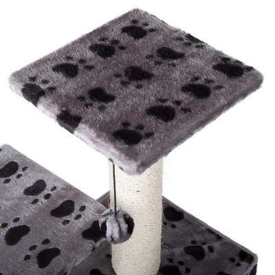 Stable, space-saving cat tree by Trixie, ideal for hiding and playing. With unique paw print design and two sisal posts with an 8.5cm diameter. Size: 44 x 33 x 71 cm (L x W x H)