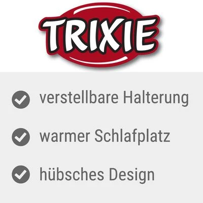 A cosy place to sleep during the cold season: The Trixie recliner for radiators is perfect for cats who love hanging recliners and can’t get enough cosy. The hutch can be easily attached to the radiator with the supplied bracket. This allows the heat from the heater to penetrate the cuddly plush fabric and keep it pleasantly warm.